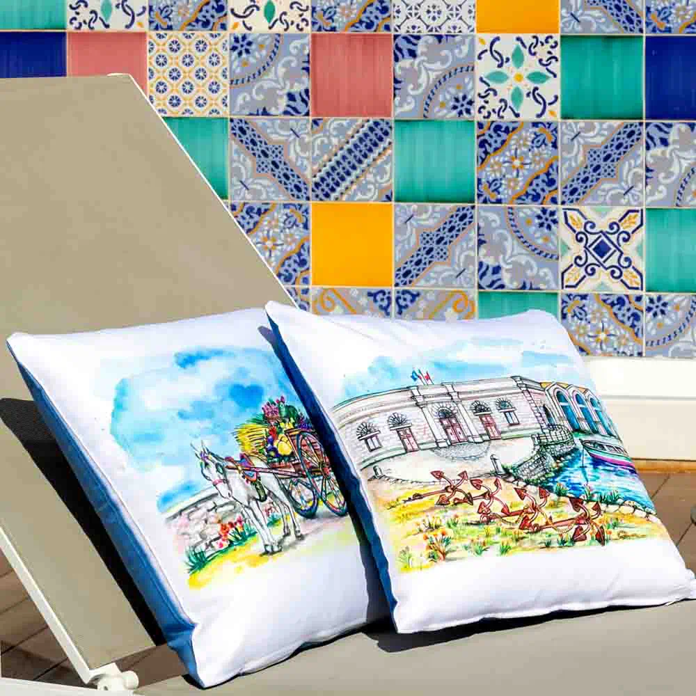 We design our creations to accompany you at every moment of the day: from the tote bag for shopping to the cushion for relaxation, from the decorated centerpiece to the most precious and refined ceramics of Caltagirone.