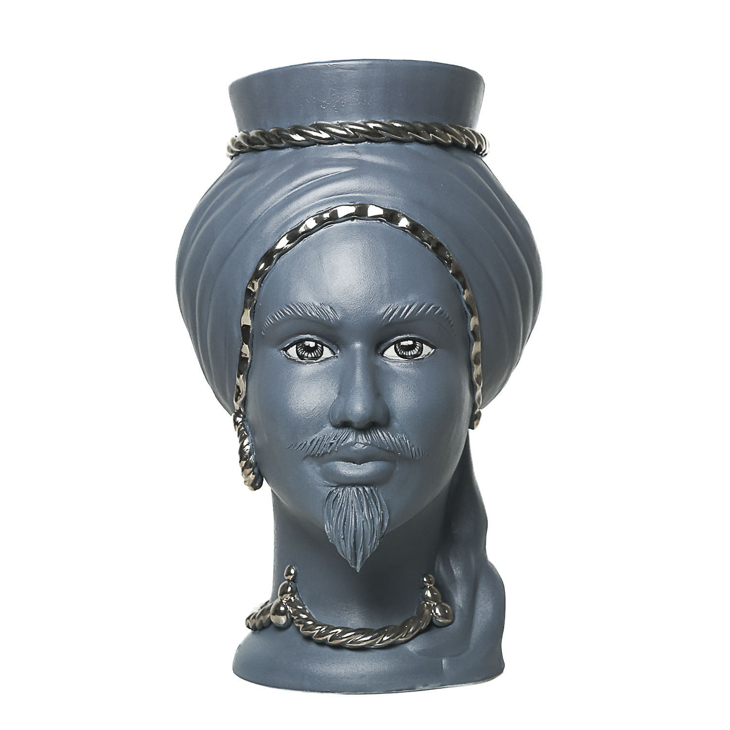 Immerse yourself in elegance and history with our Endymion Moor’s Head: an authentic work of art handcrafted by our master artisans in Caltagirone. This particular white clay head, 43 cm tall, thanks to its textural avion color and platinum details, adds a touch of luxury and prestige to any setting.