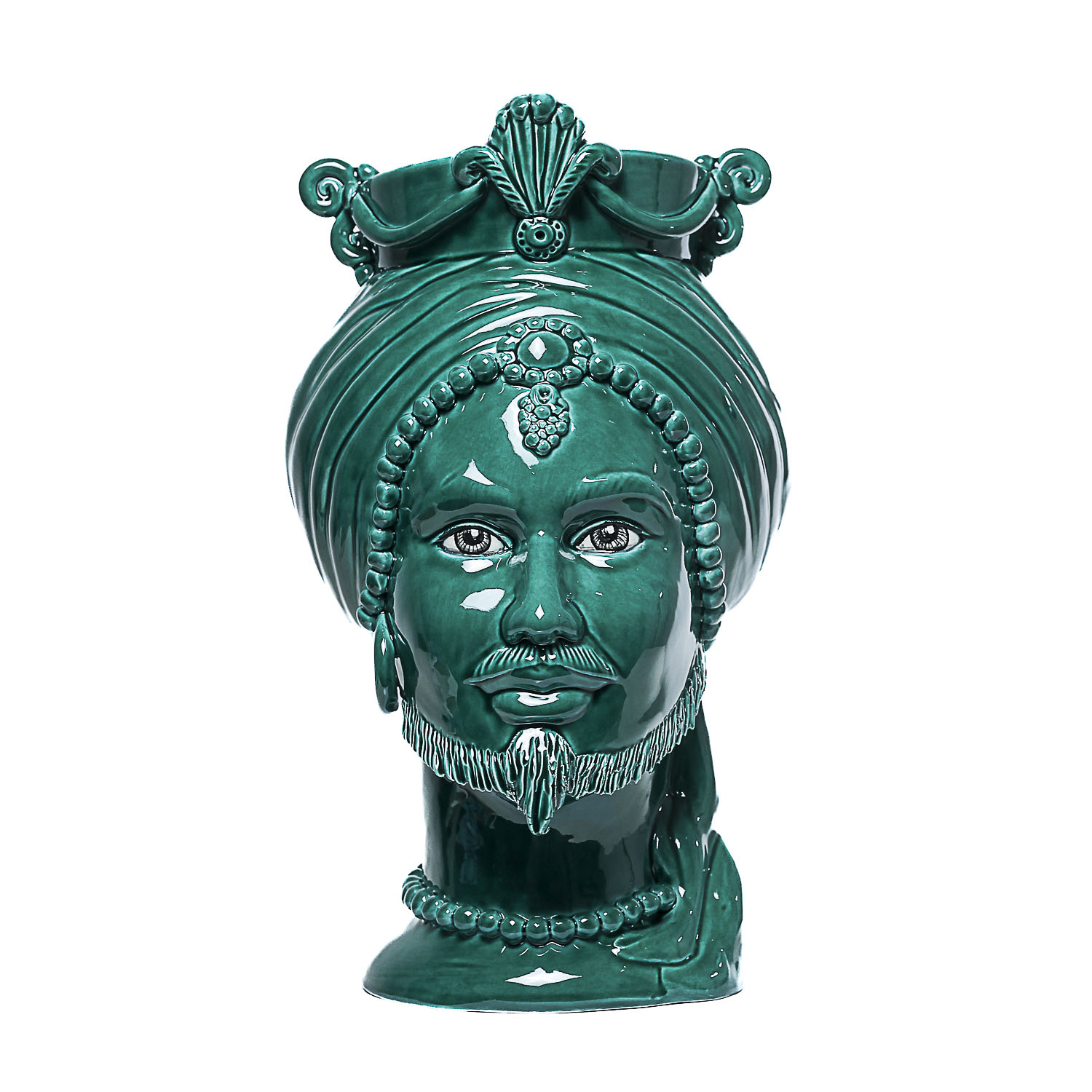 Immerse yourself in elegance and history with our Piramo Moor’s Head: an authentic work of art handcrafted by our master artisans in Caltagirone. This distinctive 43 cm tall white clay head, thanks to its Sicilian green color, adds a touch of luxury and prestige to any setting.