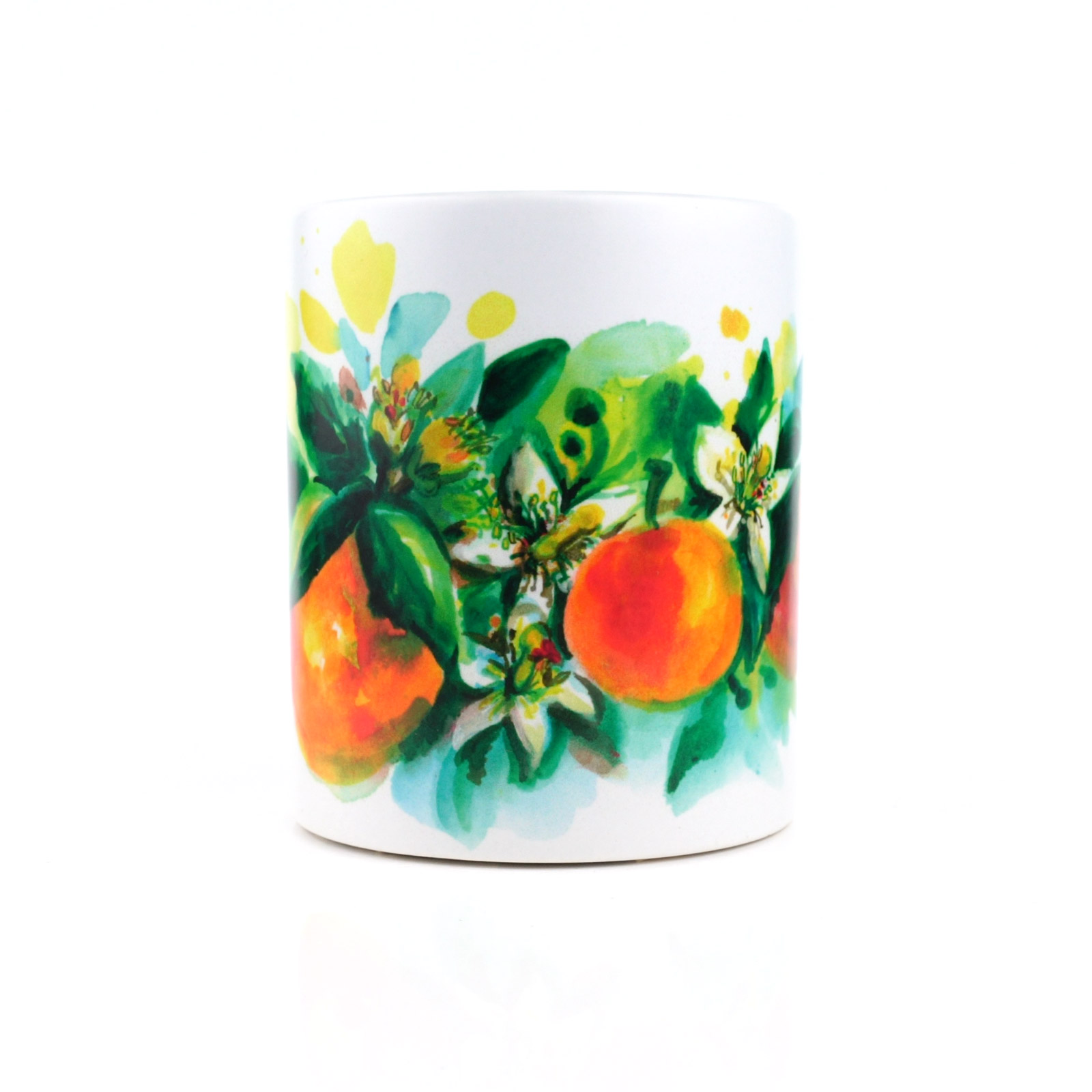 Mug depicting Oranges in Bloom, a citrus fruit symbol of Sicily.